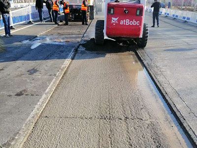橋面表層混凝土面處理:防水層施工前應先將橋面清掃干凈再對其進行高程驗收,以3m為一個斷面布置高程點,用水準儀精確超平。低洼處采用聚合物砂漿補平,高處先采用電鎬或風鎬鑿**設計高程,然后用砂漿找平。橋面表層應做到平整、無尖銳異物,不起砂、不起皮及無凹凸不平現(xiàn)象,無浮碴、浮灰、油污等,同時擋碴墻根部應無蜂窩、麻面。處理后的橋面表層平整度的要求:用1m長靠尺測量,空隙≤3mm,空隙只允許平緩變化,每米不應超過一處。